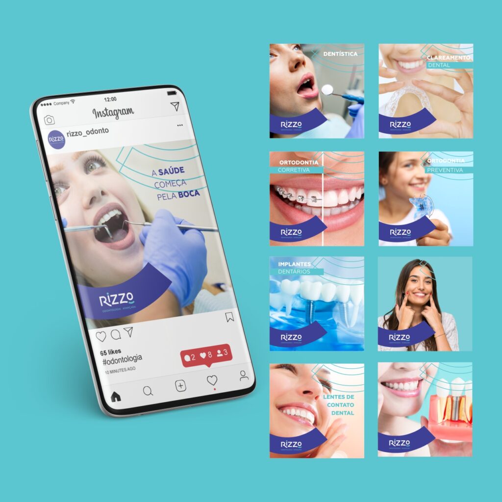 rabalho de redesign de logo Rizzo Odontologia Avançada, onde o desafio foi tornar o logo funcional e de fácil aplicação. Além da criação do novo logo elaboramos a identidade visual por completo, desde a papelaria, sinalização até o reposicionamento na web com criação do novo website e campanhas de social media.